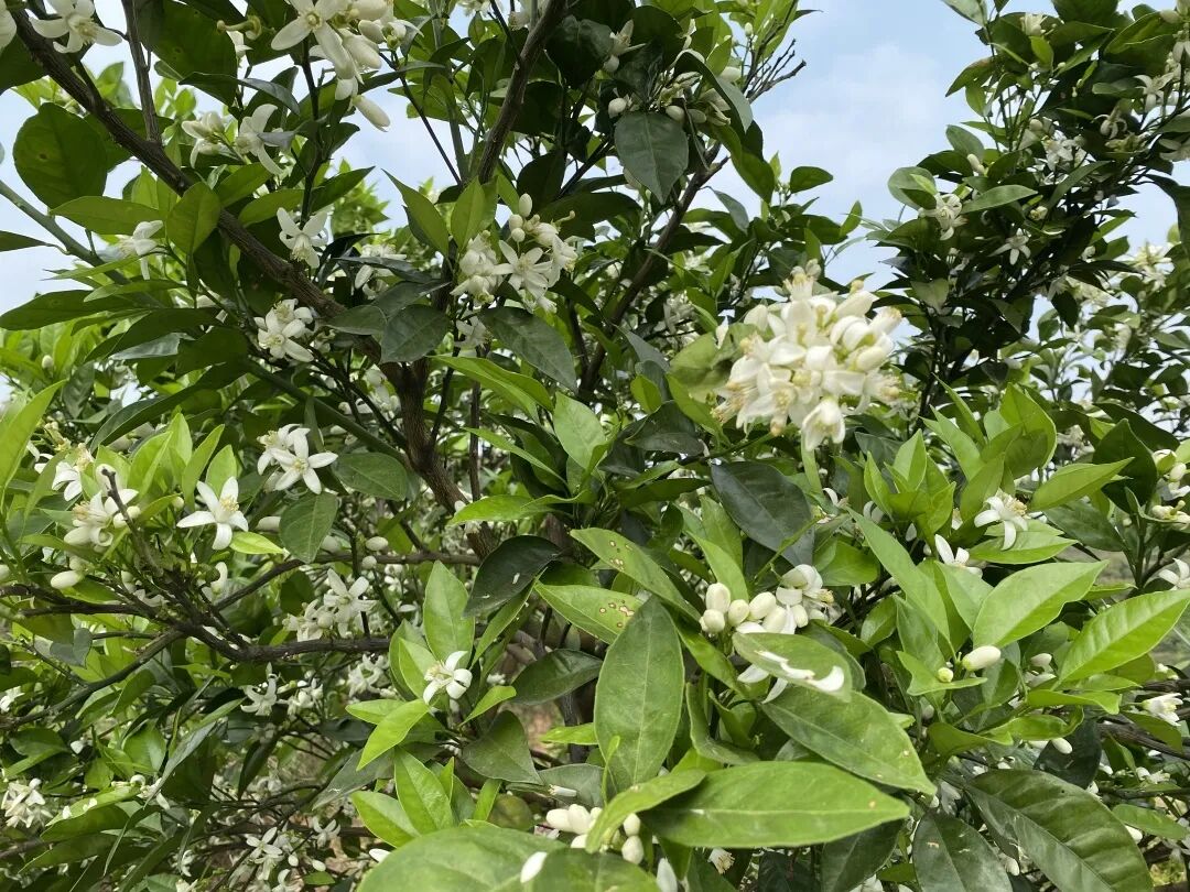 春风吹来了杂草也吹来了满树脐橙花,璞实邀你一起共赏脐橙花开。