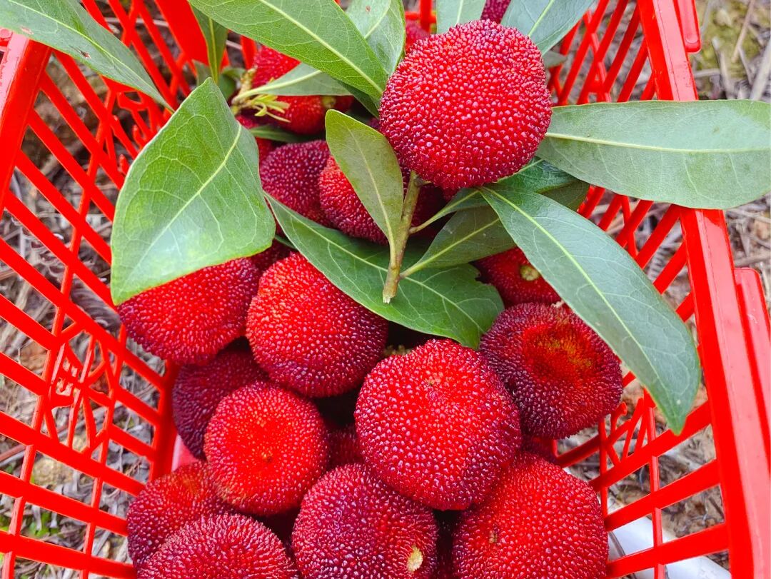 杨梅的采摘期非常短暂。在水果生长竞赛中,杨梅属于厚积薄发型选手,在其生长早期并不会产生明显变化。到转色期的到来,杨梅会迅速膨大,糖分和花青素也会迅速累积。
